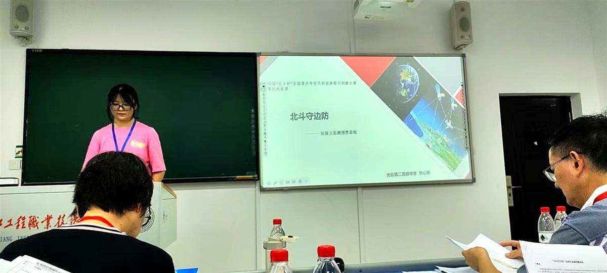 选拔赛上,光谷第二高级中学17岁学生华心妍,没有带来实物作品,而是展示了一套可24小时开展边防监测预警的系统设计方案:基于北斗短报文的通讯服务,结合太阳能发电技术、视频监控技术等物联网传感器技术、她将其命名为“北斗守边防”。