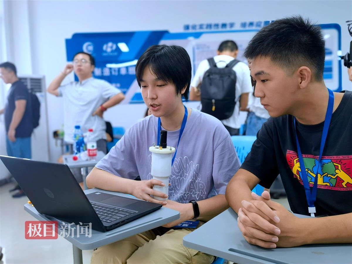 一个白色的封闭锥形筒,顶部还有一粗一细两根黑色天线,是用来做什么的?武汉第三十九中学的高中生许文浩、高今越是同班同学,这是他们参赛的作品,叫做抛掷型滑坡及堰塞湖监测设备。