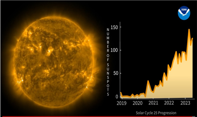 人们将太阳爆发活动及其对地球产生的扰动,形容为“太阳风暴”。从此前的记录看,比较剧烈的太阳风暴通常发生在太阳活动的高峰时段。例如,史上最强太阳风暴——卡林顿事件,发生在1859年,是第10太阳活动周的高年。当时,很多地方的电报局操作员报告,电报机火花闪烁,发生故障。加拿大魁北克大停电事件,发生在1989年,是第22太阳活动周的高年。该事件导致约600万人的工作和生活受到影响。