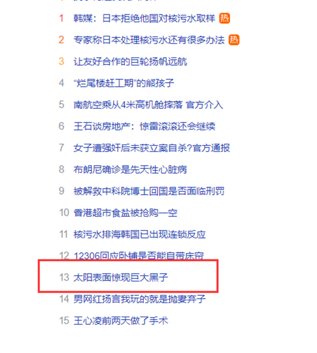 △“巨大黑子”登上热搜