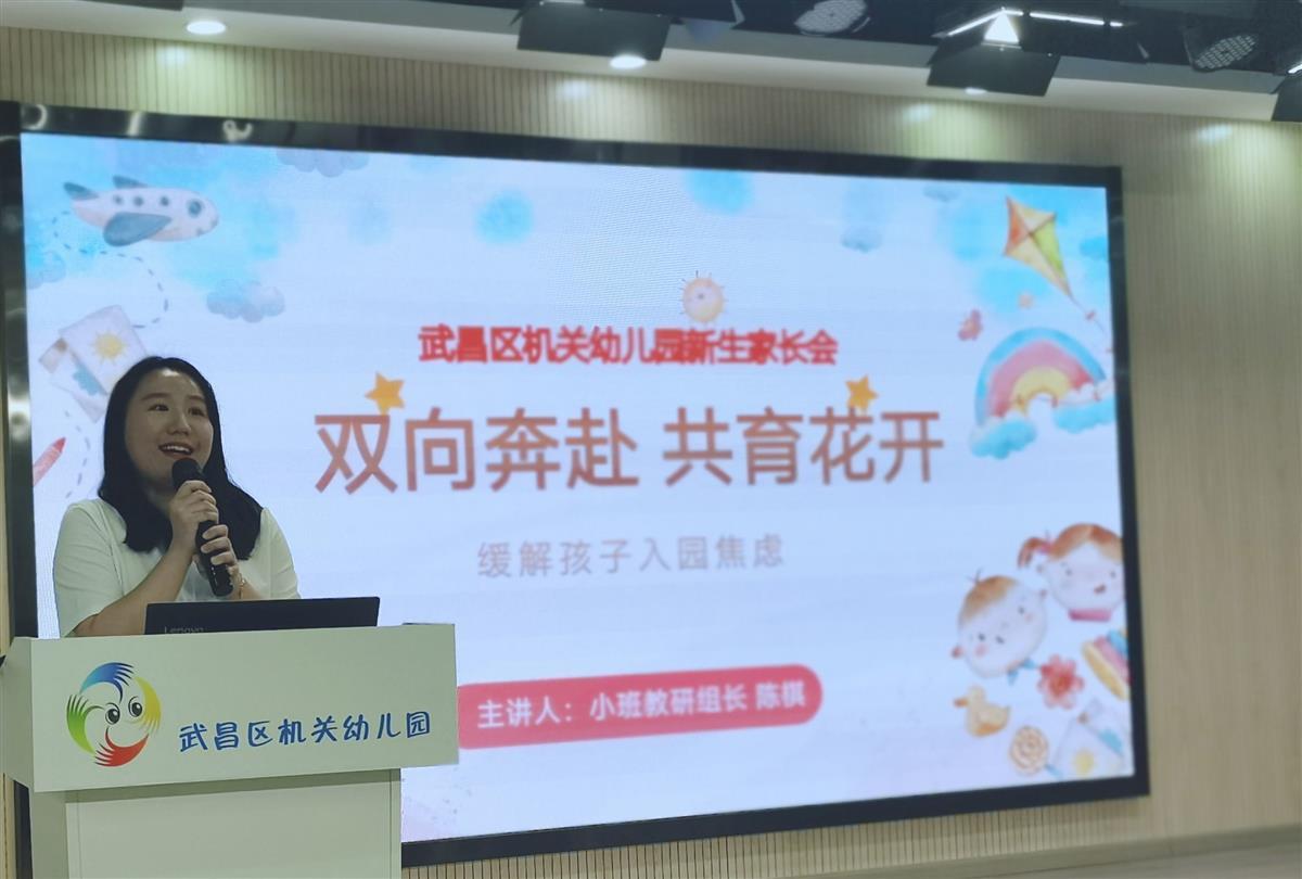 该园教研组长陈棋则以“双向奔赴 共育花开”为主题,多角度为充满紧张和期待的家长们送来如何缓解入园焦虑的妙招,引导家长正面、积极地帮助孩子缓解入园焦虑,适应幼儿园生活。同时,从一日生活流程出发,向家长们详细具体地介绍孩子们在园的生活、游戏、学习活动,让家长明晰“一日生活皆课程”的理念。
