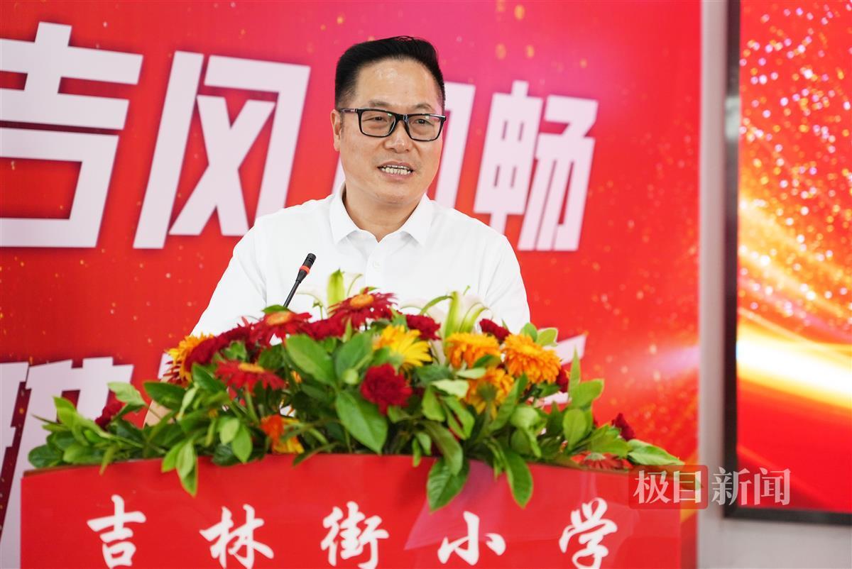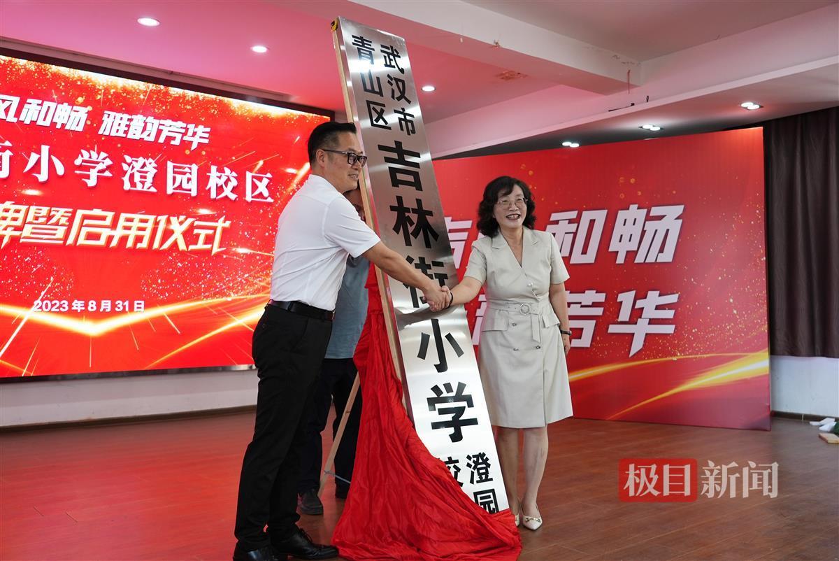 活动现场,武汉市青山区教育局党委书记、局长陈级,吉林街小学校长王萃共同为新校区揭牌。