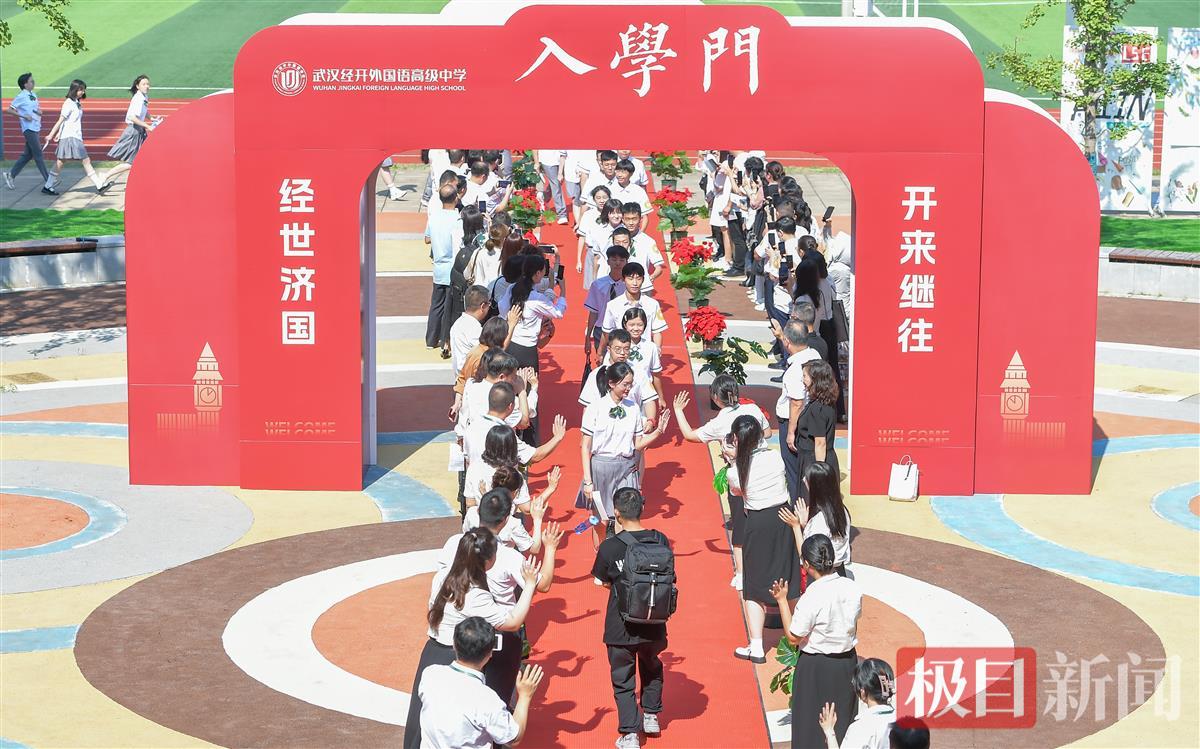 8月31日上午,武汉经开外国语高级中学举行首批新生入学仪式,200余名新生跨过入学门,给三年后的自己写一封信,仪式感满满地迎接新学期。