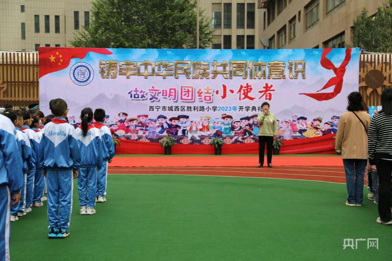央广网西宁9月1日消息(记者汪晓青)9月1日开学第一天,青海省西宁市城西区胜利路小学师生迎来了开学典礼和开学思政第一课。