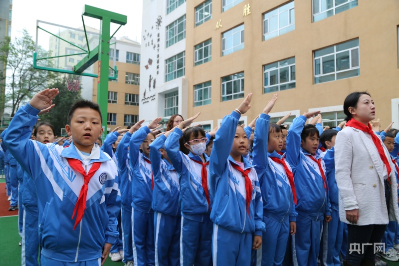 小学生敬队礼(央广网发胜利路小学供图)