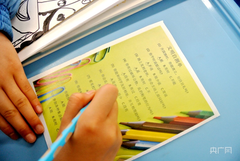 做一做“文明自测单”(央广网记者汪晓青摄)