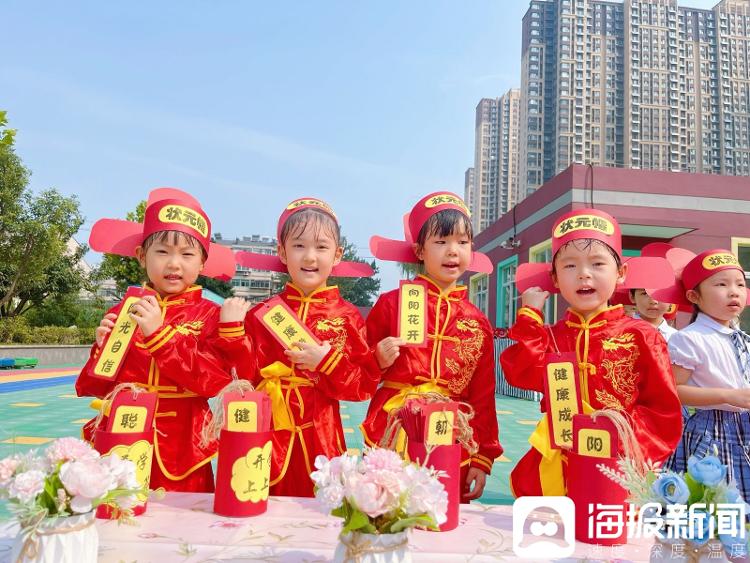敲锣打鼓,醒狮舞动……白马山幼儿园开学第一天,伴随着小朋友们的醒狮表演,“礼韵国风,礼润童年”秋季开学典礼正式开始。孩子们戴上状元帽,寓意从此开启聪明智慧,未来顺顺利利。