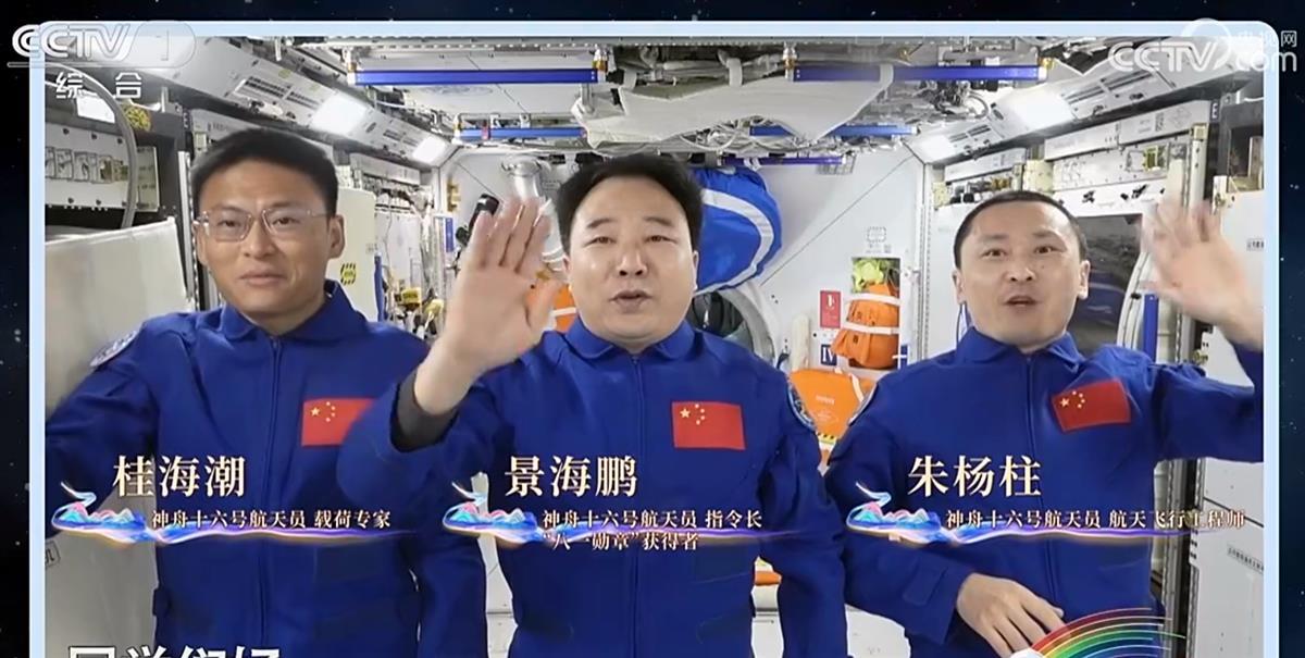 神舟十六号航天员、指令长景海鹏表示,要送给大家一颗“初心”。他表示,如今中国空间站已经全面建成,进入应用与发展新阶段,我们在轨开展诸多领域的大规模科学实验和试验。在未来我国还将实现载人登月,在月球上留下中国人的足迹,我们国家还将完成火星采样返回、木星系探测,还要研制新一代载人运载火箭等等。景海鹏表示:“同学们可以想一想,下一个实现梦想的就是你们自己了。让我们为梦想扬帆,为祖国远航,一起拥抱灿烂的星辰大海。”