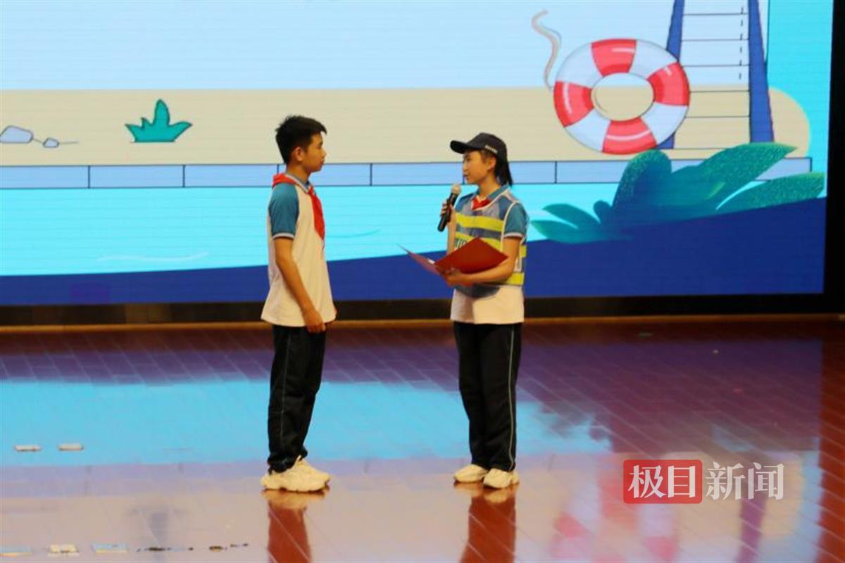 活动现场,李心怡分享了自己参加武汉少年警队暑期安全训练营的心得体会,为同学们讲解了“防溺水六不准”“意外溺水如何自救”“他人溺水如何施救”等安全常识,并发出防溺水安全的倡议:“我们的生命只有一次,同学们要珍爱生命,对自己负责、对家人负责,做到警钟长鸣,防患未然。”
