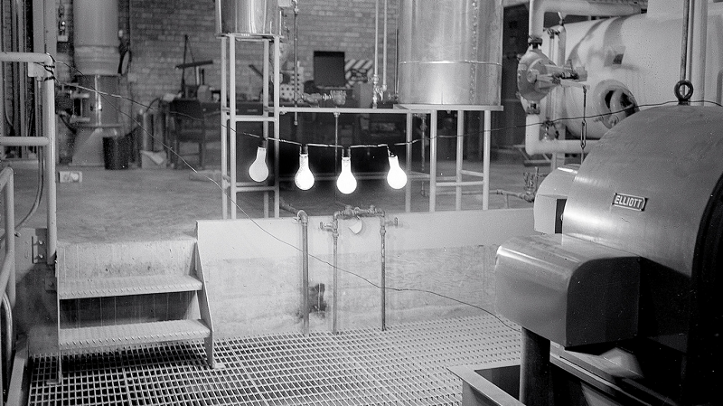 1951年,阿贡国家实验室建造的核反应堆中,世界上第一批核发电点燃了4盏灯泡。图片来源:美国阿贡国家实验室