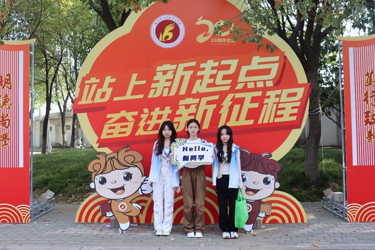 今年是法商学院办学20周年,在迎新的现场随处可以看到“站上新起点奋进新征程”等字眼的打卡点,引来家长学生驻足合影留念。