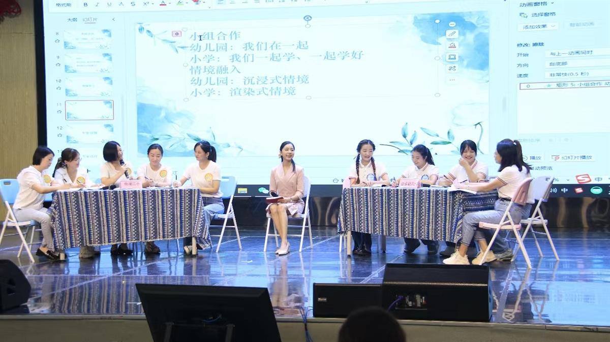 现场教研环节,研讨小组围绕“幼小衔接中数学领域入学准备策略”的话题,通过“播放视频,走进‘衔接’”“观摩课堂,发现‘衔接’”“主题教研,落实‘衔接’”“专业引领,深入‘衔接’”四个环节,展开了热烈讨论,碰撞出思想的火花,使老师们共同明晰了数学领域学习方式的差异、探寻出幼小衔接数学入学准备中科学的双向衔接策略。