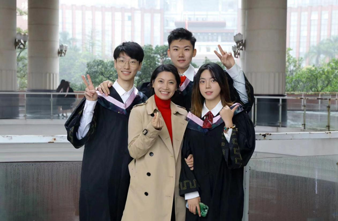 林小榆老师(中)与学生合影。(央广网发图片来源于暨南大学新闻传播学院)