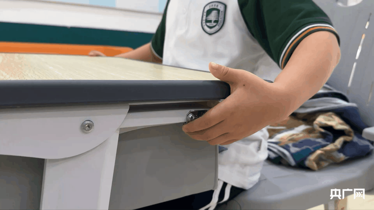 记者注意到,新的课桌可调节高度,课椅也能根据学生需求调节不同角度。每张课桌椅还配备一个小箱子,可放枕头和小毯子,让学生睡得更舒适。