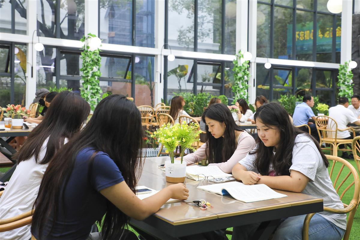 自9月中旬阳光书屋生态餐厅试运营以来,热度值持续飙升,“书香+美食”的跨界,深受年轻学子追捧。“太浪漫了!如同在大自然里一般,返璞归真,让我流连忘返。”近期,该校文学院大四学生赵悦和室友们一有空就“黏在”阳光书屋生态餐厅,“这里既有‘烟火气’,又有‘书香味’,和室友在茗茶的芳香中共读一本好书,这便是大学生向往的生活了!”