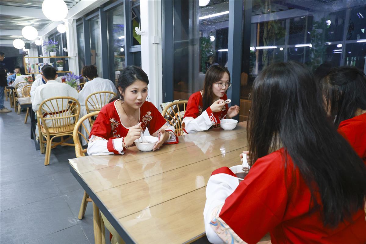 学子一边享用轻食简餐,一边与好友分享阅读感悟(通讯员 陈冲摄)