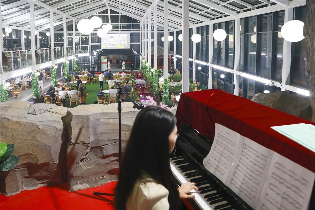 阳光书屋生态餐厅在假山上设有钢琴演奏处(通讯员 陈冲摄)