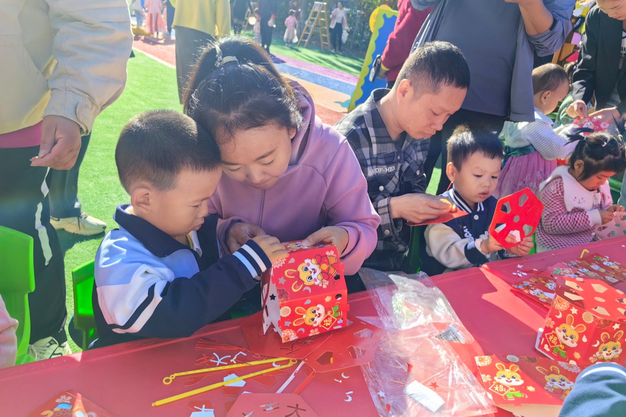 孩子们动手制作灯笼(王卉摄)