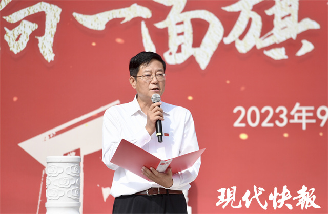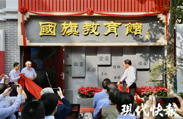 现代快报讯(通讯员庞红梅记者于露/文施向辉/摄)9月27日,南京市宁海中学举行“心向一面旗共筑中国梦”主题活动。现场,宁海中学国旗教育馆揭牌。记者了解到,馆中藏有一份珍贵的“镇馆之宝”——编号2019—0050号国旗,它曾在2019年5月20日于天安门广场国旗杆悬挂使用。