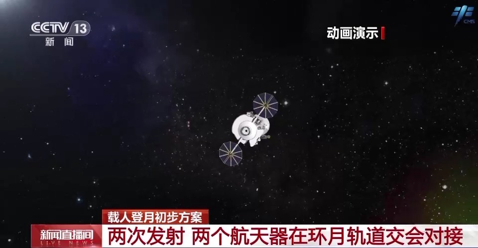 载人登月初步方案:两次发射两个航天器在环月轨道交会对接