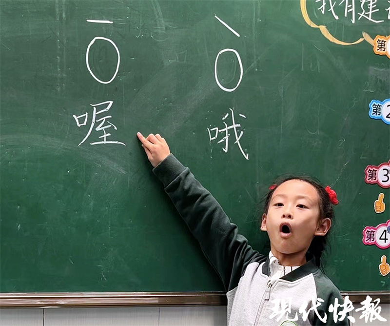 现代快报讯(记者 黄艳/文 施向辉/摄)开学一个多月,全国各地的一年级小朋友在学习汉语拼音。近日,有网友在教育部门网站留言,提出“a o e” 中间这个o为啥读“ao”?教育部门给出了可参考发音,但网上仍有不同的说法,引发热议。10月16日,现代快报记者来到南京市长江路小学,请一年级师生做示范,拼音o读音对应的汉字是“喔”和“哦”。
