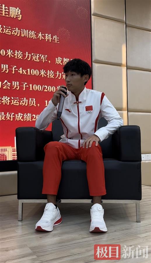 10月16日,获得杭州亚运会男子4×100米接力金牌的华中师范大学学生陈佳鹏回到学校,参加了座谈会,与师生分享了自己的亚运历程、比赛技巧以及应对压力的方法。该校体育学院的学生见到陈佳鹏秒变迷弟迷妹,和陈佳鹏聊起了运动会的参赛经历。