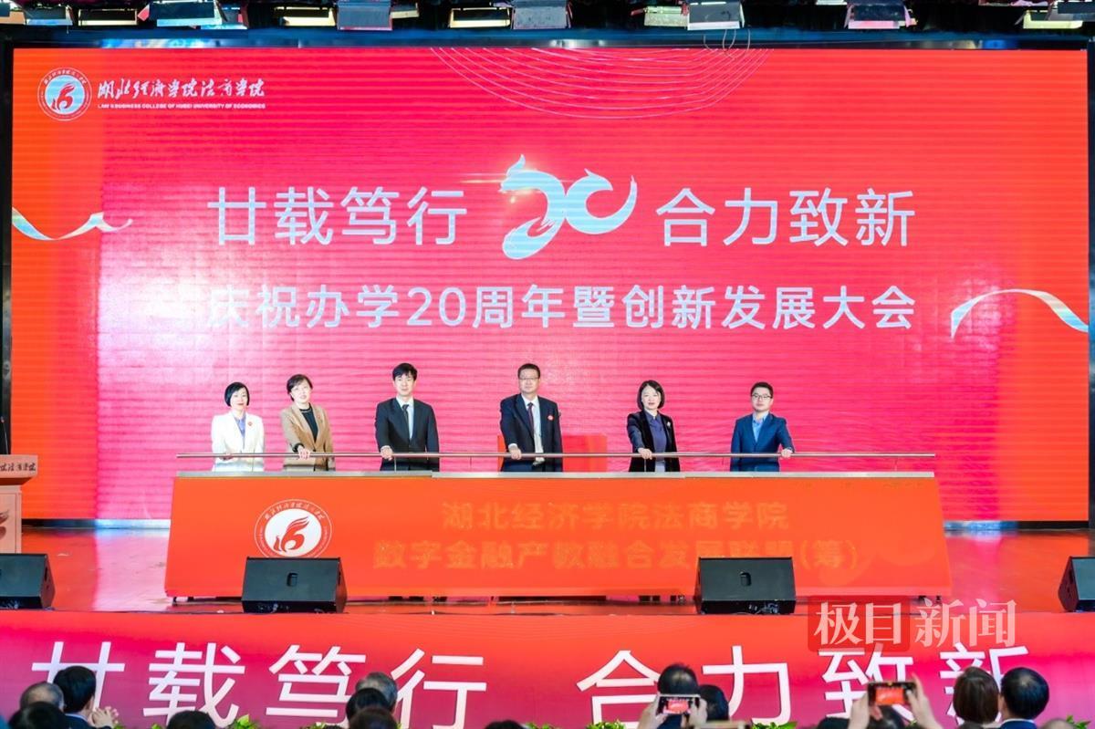 现场举行了湖北经济学院法商学院数字金融产教融合发展联盟(筹)启动仪式,多家数字金融公司与法商学院共同组建数字金融产教融合协同育人共同体;发布了《湖北经济学院法商学院教育数字化战略(2023—2035年)行动计划》,部署法商学院教育数字化战略,推进实施大学数字素养提升工程,开辟法商教育发展新赛道和塑造教育发展新优势。