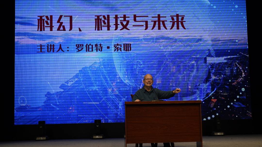 在石室中学的演讲结束后,罗伯特·索耶还前往了四川大学,分享题为《科幻、科技与未来》的讲座,展示了科幻文学探索未知和超越现实的力量。