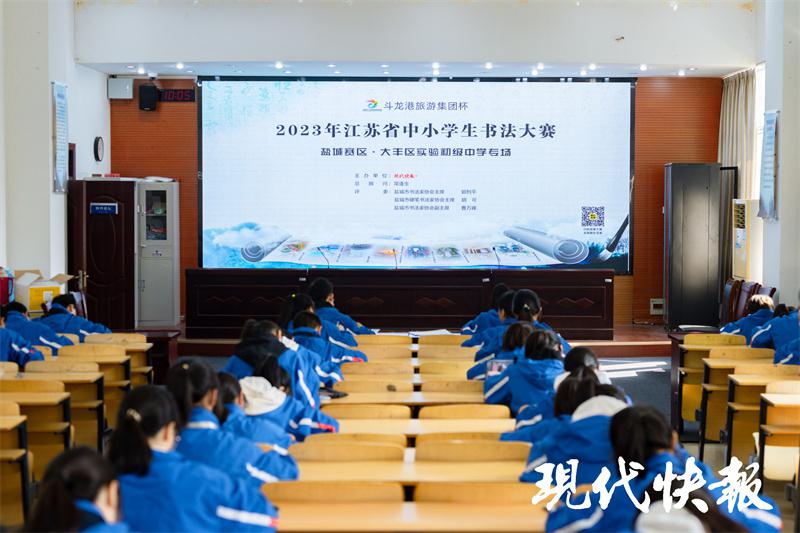 现代快报讯(记者姜振军文/摄)正德厚生,至美至真。10月26日,"斗龙港旅游集团杯"2023年江苏省中小学生书法大赛盐城赛区的比赛在大丰区实验初级中学举行。在充满书香气息的校园里,处处彰显"让每一名师生都畅享成功的乐趣"的办学宗旨,孩子们在幽雅的环境中浸润,在愉悦的书写中展现自我。