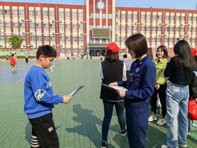 活动中,宣传人员结合近年来全国各地发生在学校的火灾案例,利用通俗易懂的语言为师生阐述了火灾的危害性及学习消防安全知识的必要性。同时结合校园火灾特点,着重讲解怎样预防火灾、发生火灾时如何报警、如何扑救初期火灾、如何自救逃生日常防火知识、注意事项等消防安全常识。讲解内容贴近生活、贴近学生、贴近实际。同时,宣传人员又通过答题发放小礼品的方式,与学生展开互动,充分调动起大家学习消防知识的积极性。整个过程中,孩子们都聚精会神地听,台上台下形成了良好的互动。孩子们在愉快的过程中学到消防知识,掌握了逃生自救的方法,对消防安全有了更深的理解和认知。