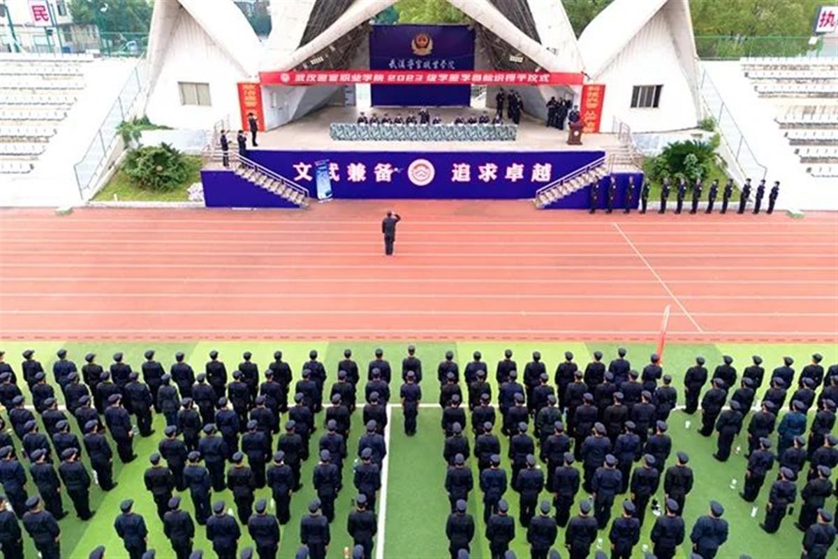 10月26日下午,在武汉警官职业学院东西湖校区操场,伴随着庄严的国歌声,仪式正式拉开帷幕。2023级全体新生学警们精神抖擞、容光焕发,气势磅礴的国歌萦绕在校园之中,学校仪仗队员们护卫着中国人民警察警旗,迈着正步行进到主席台,面向全场展旗,全体人员向警旗庄严敬礼。
