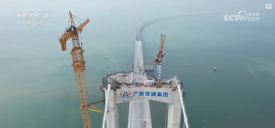 总台央视记者苏童:这里是深中通道的建设现场。这是一条横亘在珠江口的长24公里的桥隧综合体特大工程,我现在所在的位置是在已经合龙的伶仃洋大桥高270多米的桥塔顶端,从这里可以非常清晰地俯瞰到整个工程的施工进度。比如,现在在我们正下方就在进行桥面的施工,而在东侧的不远处,我们看到大桥从海面上消失了,连接着它的是一条长达6公里多的海底隧道,也在今年实现合龙,为11月的主线贯通打下坚实基础。如何把双向八车道的隧道放进几十米深的水下?这和天上的北斗卫星有着密不可分的联系。