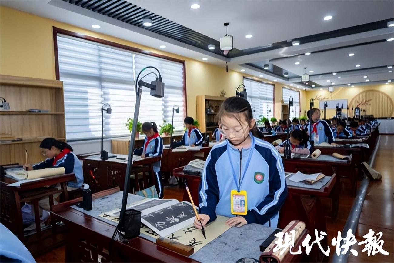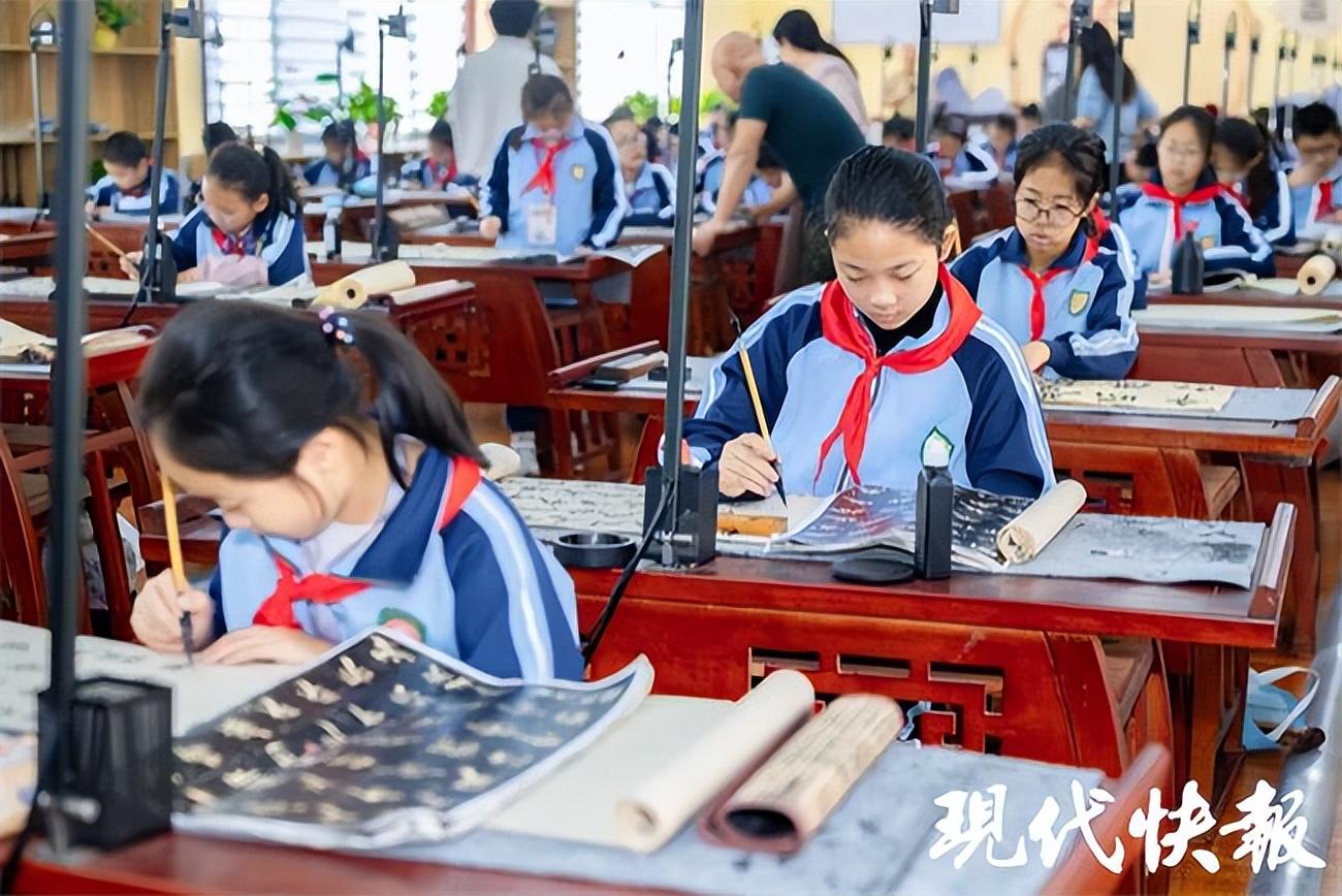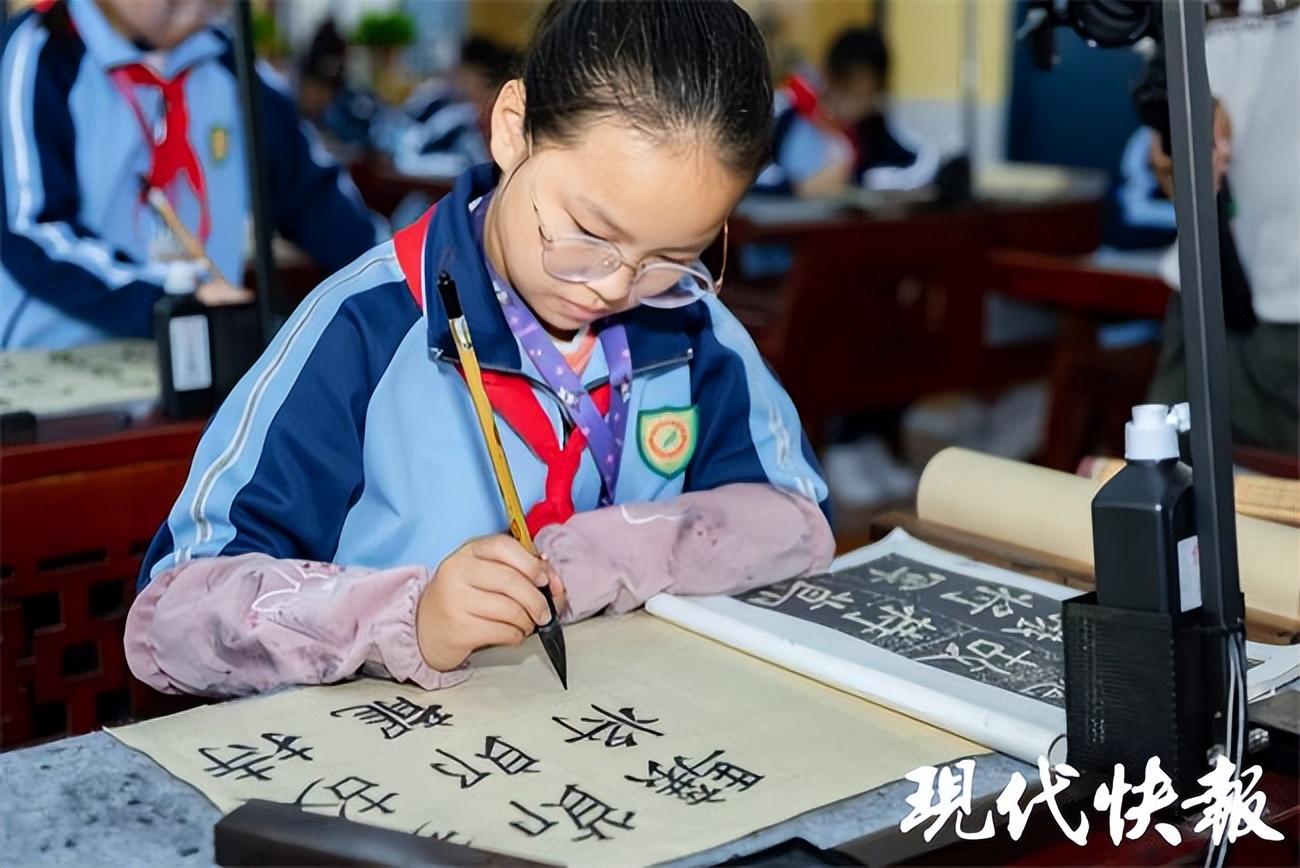 现代快报讯(记者姜振军文/摄)"我是北小娃,从小爱书法。"11月2日,"斗龙港旅游集团杯"2023年江苏省中小学生书法大赛盐城赛区比赛走进阜宁县实验小学北京路校区,100多名孩子进行了现场书法竞技,孩子们举手投足格外专注,享受着书写的笔情墨趣。