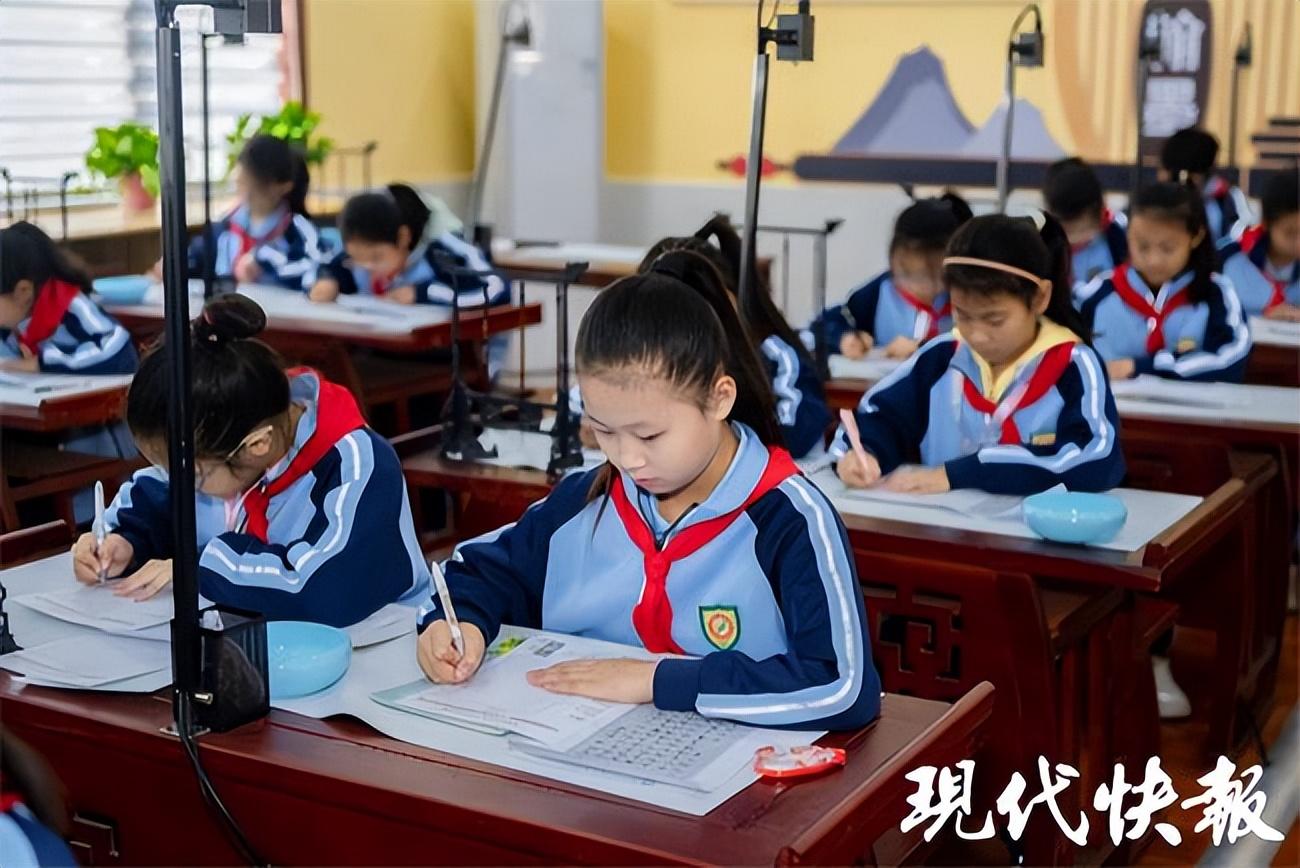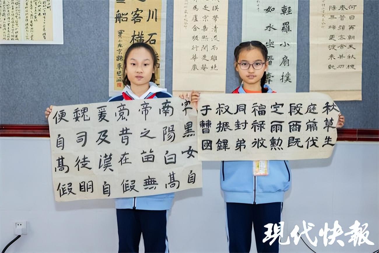 "我是五年级的暑假里自己看直播练习的,现在只要有时间我就会练字。"六(2)班男生王俊益的钢笔字清新自然,笔锋犀利。四(8)班的周雨婷练习书法一年多,在她看来,书法是一门艺术,可以继承和发扬中国的传统文化,"学习书法历练了身心,人也变得更加专注和细心。"