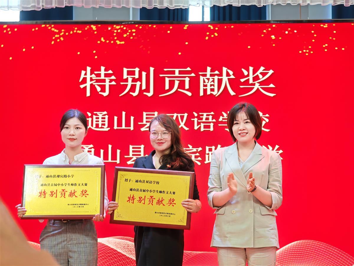 文明如水,润物无声。11月1日下午,湖北通山县首届中小学生帅作文大赛颁奖活动在通山县双语学校隆重举行。聚光灯下,30名获奖学生代表及11名优秀指导教师代表走上领奖台,成为文明通山的“代言人”。通山县委常委、宣传部部长张晓丹等出席活动。