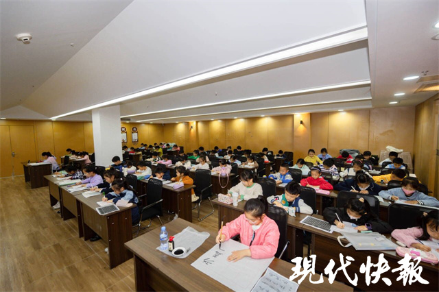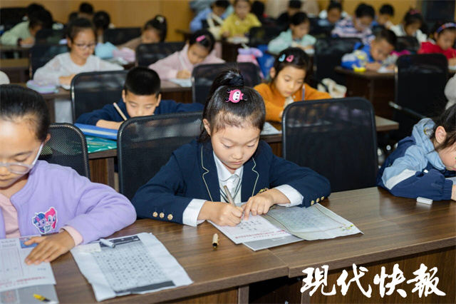 在软笔比赛区,来自景山小学的女生金芷伊用隶书演绎着杜甫的《八阵图》。“我练习书法5年了,一年级开始练毛笔字,还会写小篆和楷书,我还非常喜欢画画,书画都是我们的传统文化。”在金芷伊眼里,练字和画画既提高了她的审美能力,还增强了自信心。