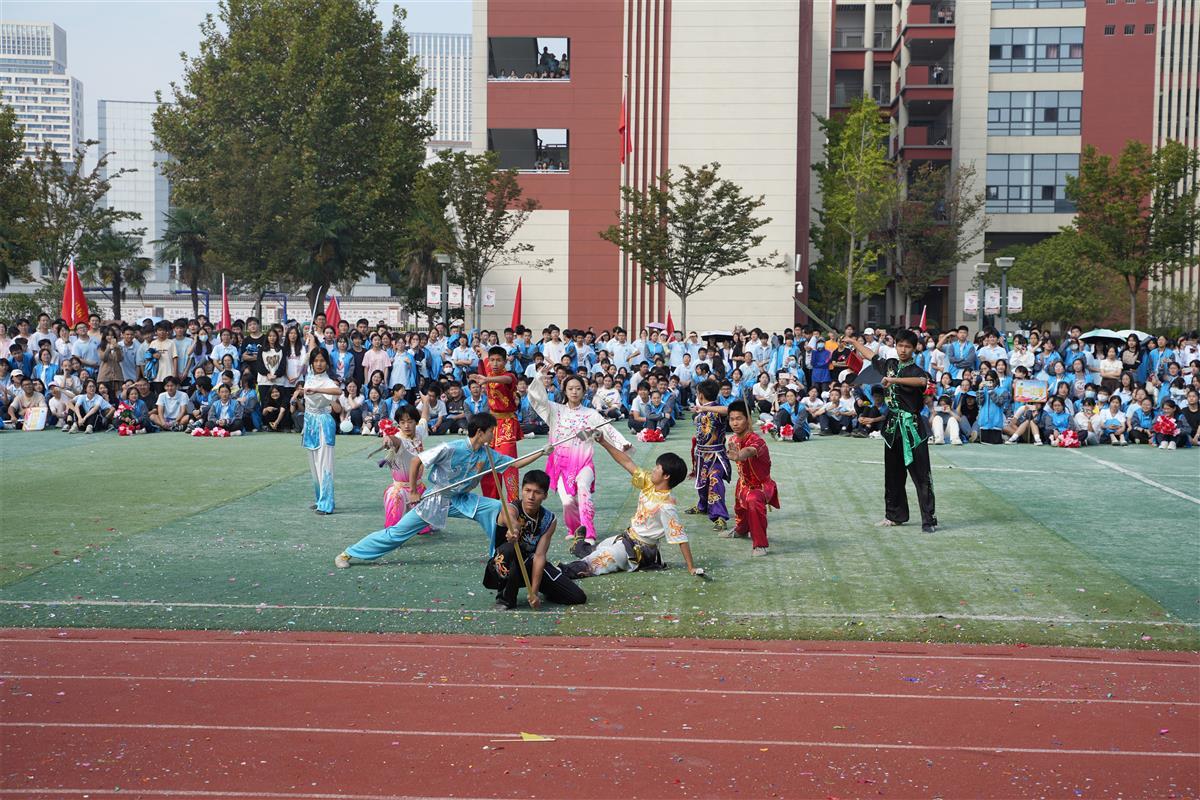 本次运动会共设立田径比赛和团体趣味比赛两大项目,并首次实行师生同赛。田径项目以短跑、跳高、跳远比赛为主。趣味比赛有八仙过海、旱地龙舟、击鼓颠球等项目。运动场上同学们顽强拼搏、你追我赶,各班啦啦队助威呐喊响声震天。