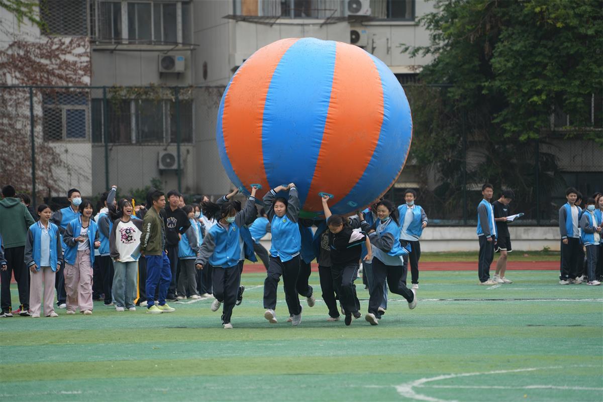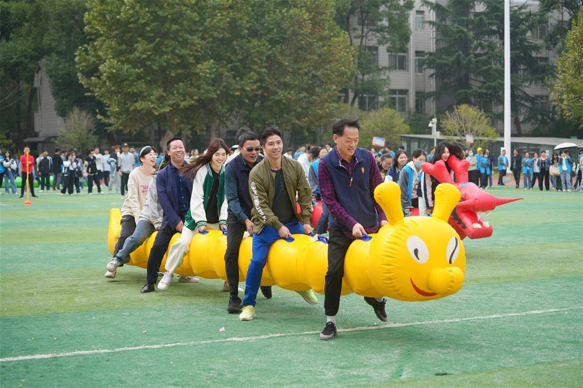 特别是趣味运动比赛项目中,师生同台竞技,十分考验默契度。大操场上的热烈氛围被一次次“点燃”,欢快的笑声弥漫整个校园。