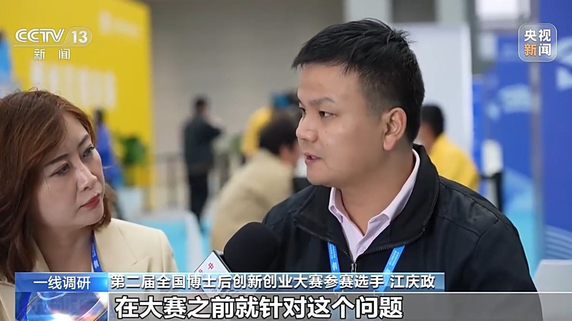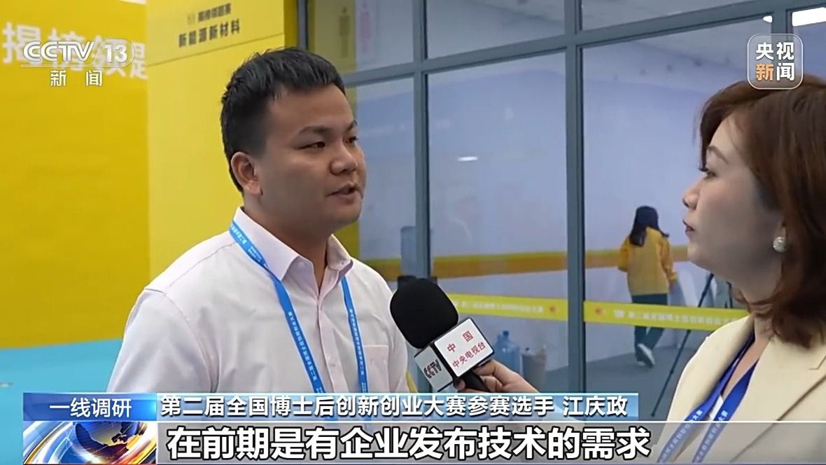 第二届全国博士后创新创业大赛参赛选手 江庆政:在大赛之前就针对这个问题,已经有了一个比较好的一个研究基础,所以我们才能去揭这个榜,否则的话如果没有一定的基础,可能很难达到它的指标,公司可能也很难对接得上。