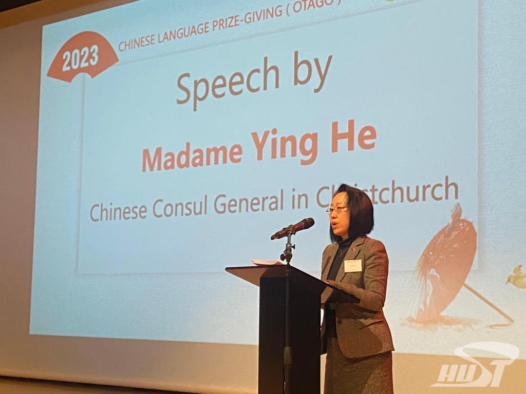新闻网讯(通讯员 宋雨佳 杨琨)当地时间11月1日,由坎特伯雷大学孔子学院主办的新西兰坎特伯雷地区优秀汉语学习者颁奖典礼在克赖斯特彻奇市圣玛格利特学院(StMargaret’s College)举行。中国驻克赖斯特彻奇总领馆总领事何颖、教育领事申健,新西兰中国友好协会基督城分会会长克里斯·古德温(Chris Goodwin),坎特伯雷大学人文学院院长、坎大孔院理事会主席凯文·沃森(Kevin Watson)教授,坎特伯雷大学孔子学院院长宋志方参加了颁奖典礼,并为获奖学校与学生颁发了荣誉证书和奖品。