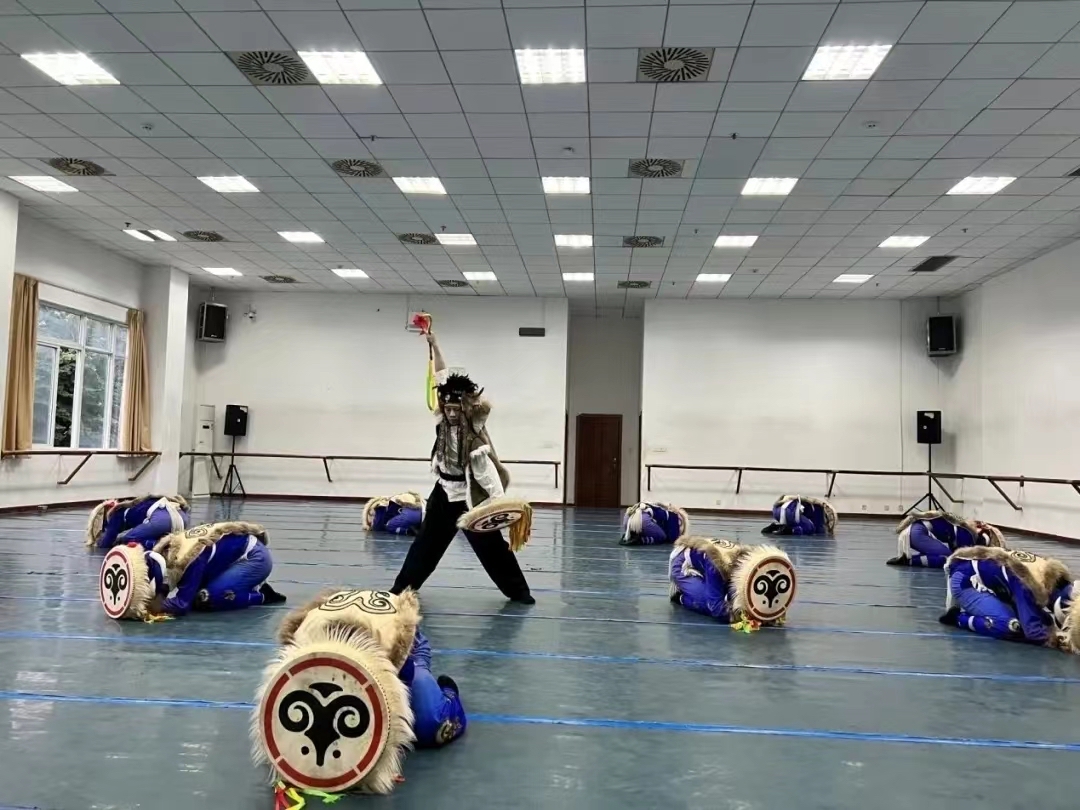 舞蹈学院22级廖欣宇介绍说,该作品由10位女舞者进行演绎,手长鼓在朝鲜族语中有召卫(更鼓)的叫法,更鼓指的是古代报更的鼓声。舞蹈演员犹如夜晚报更时的精灵,手持手长鼓,用掌轻敲重打,并运用朝鲜族特有的传统长短节奏,配合不同长短节奏的特性在独特的跳跃、顿足、踏地、旋转以及抻、顿感等动作中凸显朝鲜族长短节奏及鼓舞的美韵。