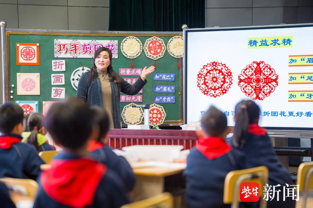 在三年级的劳动课《巧手剪团花》中,记录下同学们一个个问题的“问学任务单”被江苏省优秀科技辅导员、南京市优秀教育工作者沈军老师用出了花。孩子们热切探讨团花制作的顺序和操作方法,感受了“对称之美”,真正做到了动眼、动手、动脑。