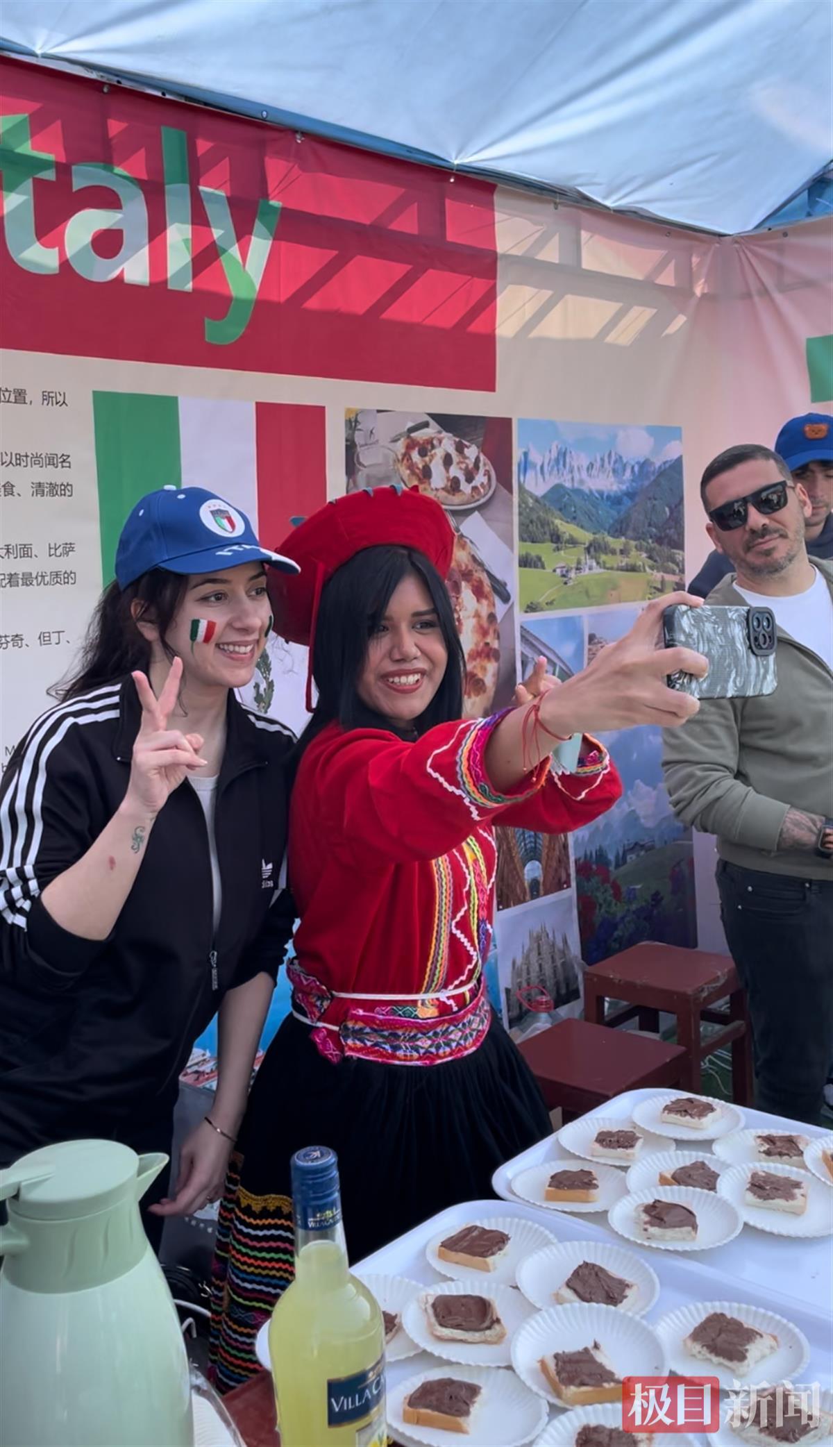 “你好美,我想和你合影可以吗?”“没问题,来吧!”一个上午,意大利女孩冬梅忙个不停,她熟练地把榛子巧克力酱抹在面包上,边介绍边分享给大伙,并满足大家的合影愿望。