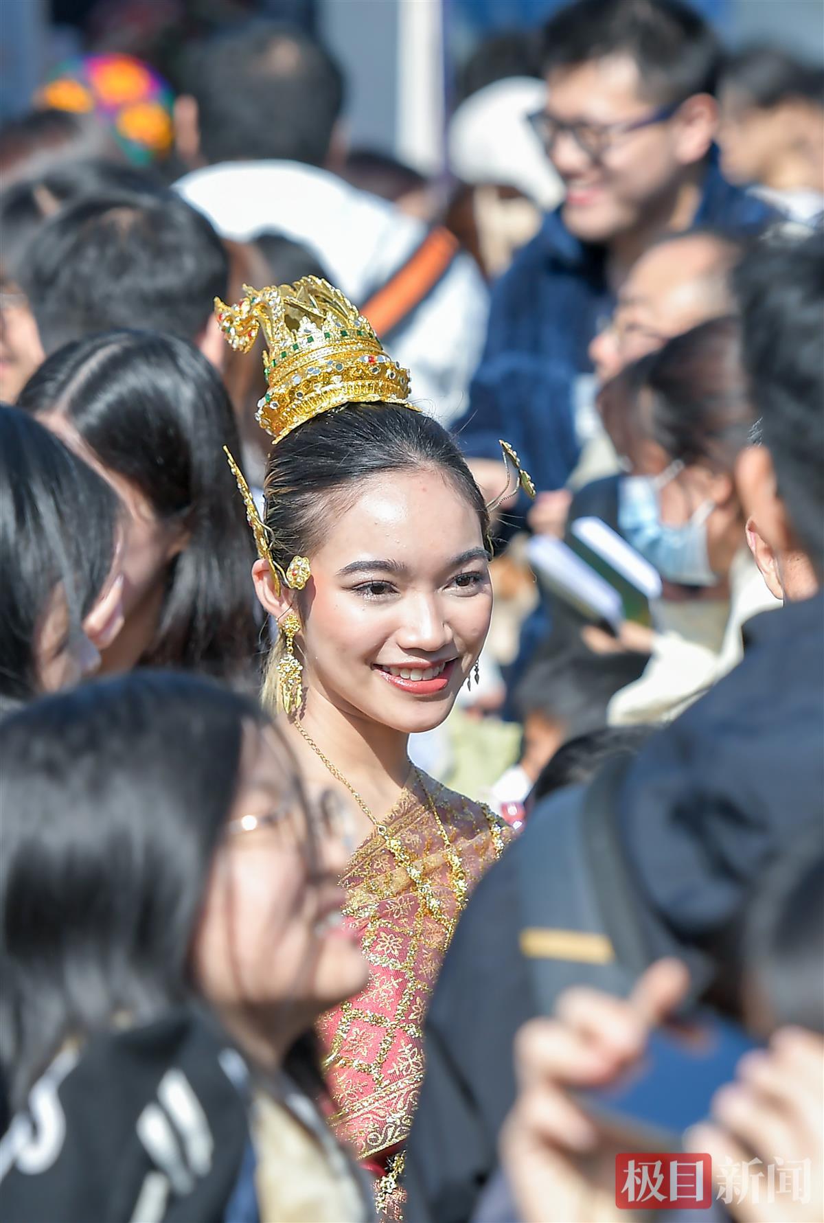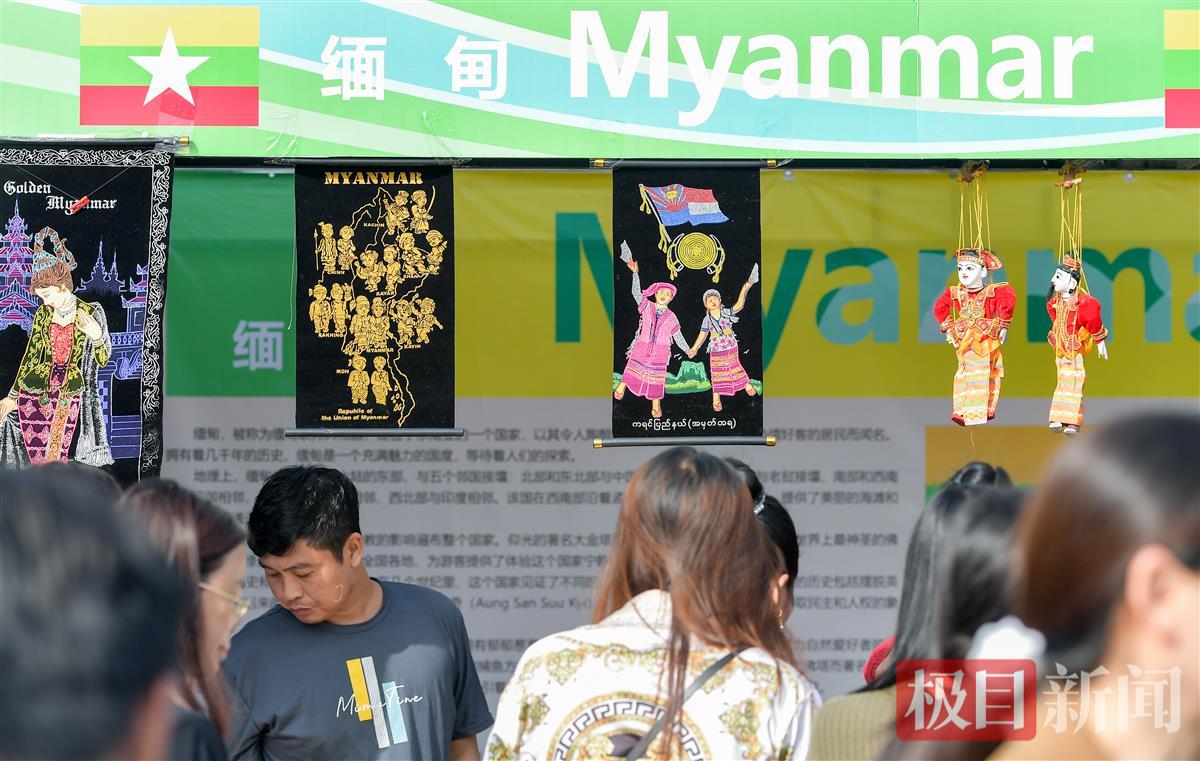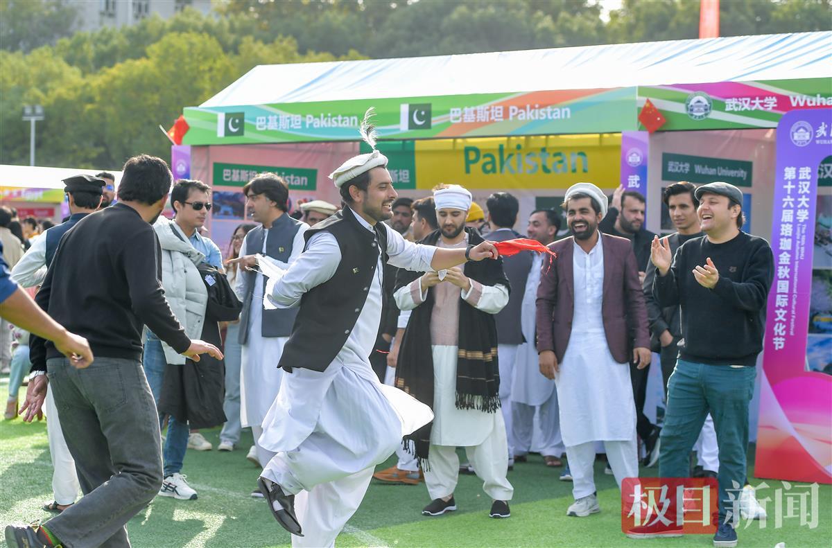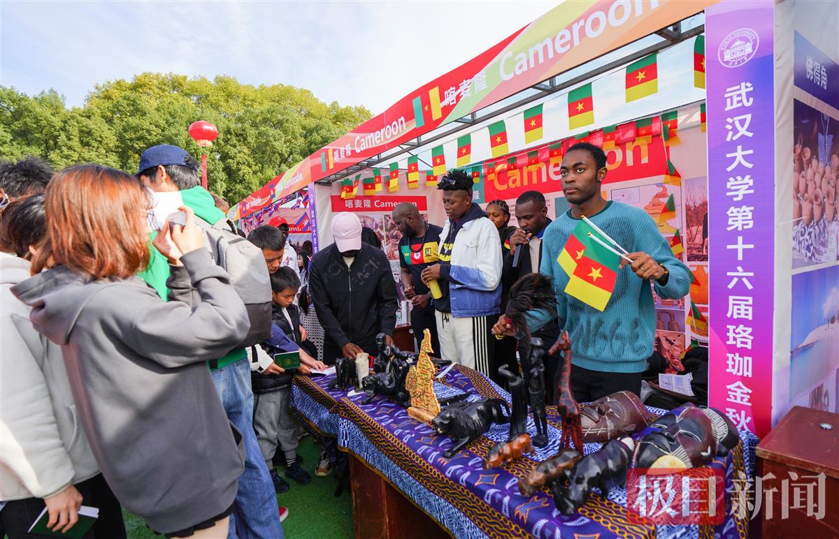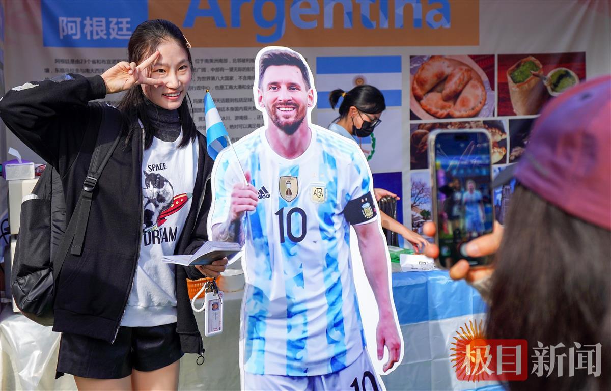 东帝汶留学生帮助人们体验民族传统服饰,阿根廷留学生设置梅西立牌打卡点,缅甸留学生用民俗生活画装饰展台,沙特阿拉伯留学生一起拉着手跳舞……来自100多个国家和地区的国际学生在武大校园集中展示了极具民族特色的文化艺术品、服饰和乐器,以及异域风情浓郁的歌曲和舞蹈,并制作了本国特色美食。