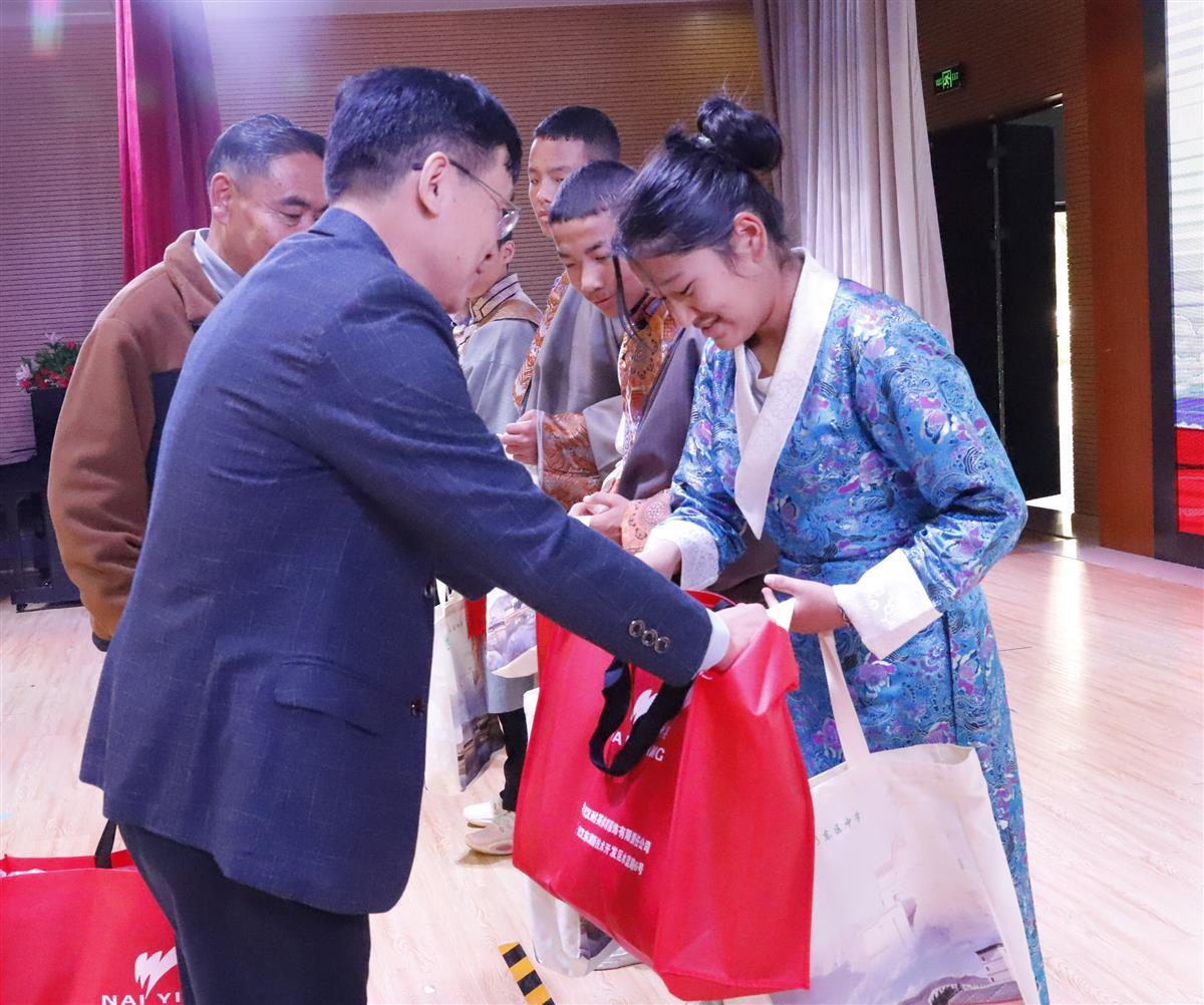 光谷汤逊湖学校的老师们向西藏乃东中学的学生们赠送各种礼物