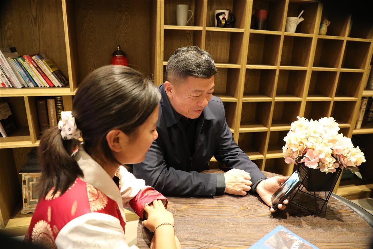 得知米玛曲珍(左)是自己援藏时教的巴珍的妹妹,杨丰铭激动地让她拨通已考上济南大学姐姐的视频电话
