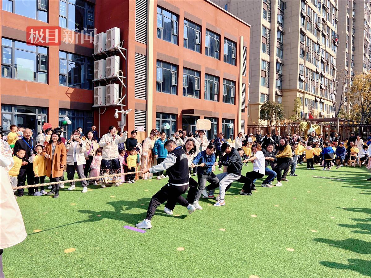 在最后的拔河比赛中,爸爸妈妈们个个铆足了劲,既是为自己班级争夺荣誉,也展示了班级的凝聚力和团结力,更让孩子们感受到来自爸爸妈妈们的力量和拼搏精神。