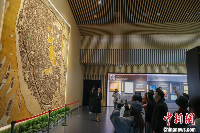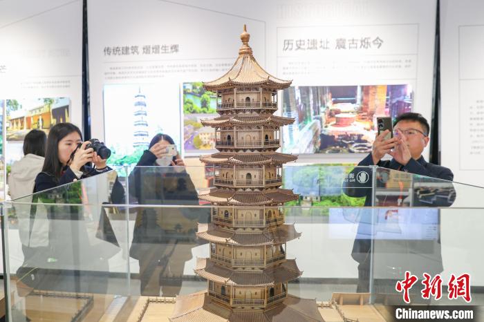 图为南昌市规划展示中心内的南昌市古建筑模吸引参观者拍照。刘力鑫摄