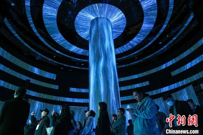 图为市民游客在南昌市规划展示中心的未来厅“穿越时空”领略未来城市的模样。刘力鑫摄