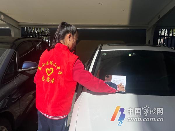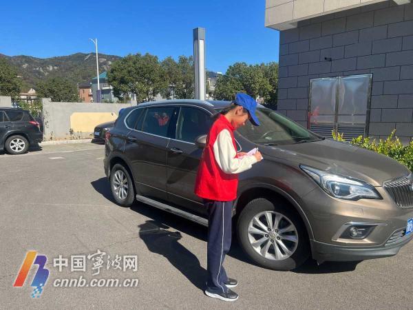 11月24日,象山县塔山中学一群学生正在校园内各停车处仔细“巡逻”,一旦看到不符合停车要求的车辆,便会毫不留情地上前张贴“罚单”。这是怎么回事?